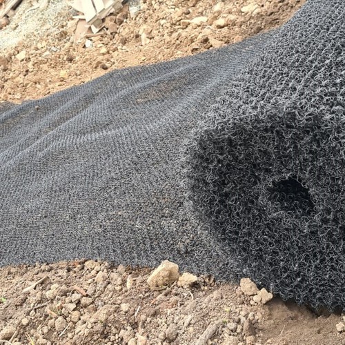Хаотичная структура волокон ограничивает перемещения частиц грунта или семян многолетних трав по поверхности откоса. Полиэфирная геосетка в структуре полотна геомата обеспечивает материал необходимой прочностью для сопротивления нагрузкам.