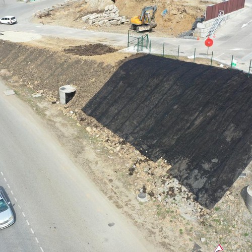 На крутых склонах возникает необходимость в повышенной прочности геомата на растяжение, т.к. сдвигающие силы грунта на этих склонах значительно выше, чем на пологих.