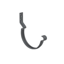 Конструкция крюка имеет более вытянутое и глубокое ребро жесткости, поэтому крюк выдерживает повышенные силовые нагрузки. Передний замок крюка фиксирует завиток желоба снаружи, и благодаря этому желоб удобно монтировать даже после установки фартука-капельника. Задний замок имеет конструкцию, исключающую смещение желоба под нагрузкой. Отверстия под крепеж выполнены с зенковкой под шляпку в потай. На передней части крюка расположен фирменный штамп - лилия. Поставляется с комплектом креплений.
