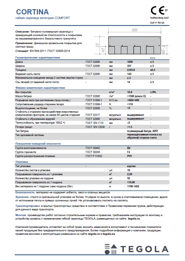 Технический лист гибкая черепица CORTINA