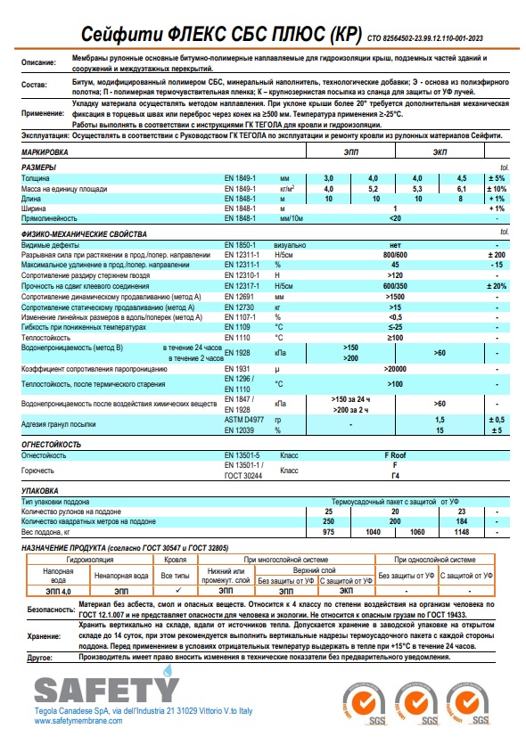 Технический лист Сейфити Флекс СБС Плюс (КР)