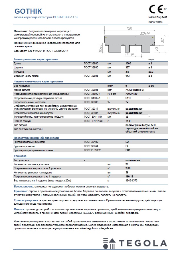 Технический лист гибкая черепица GOTHIK