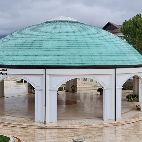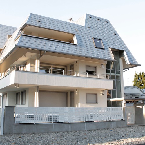Модель черепицы ПРЕСТИЖ Ультиметал HD выполнена с применением прочного и легкого алюминия. Помимо практичности, алюминий, покрашенный с применением современных полимеров, предлагает особую эстетику. Большой размер пластин подчеркнут соответсвующей алюминиевой стыковой накладкой. По-разному укладывая пластины черепицы можно менять рисунок кровли.