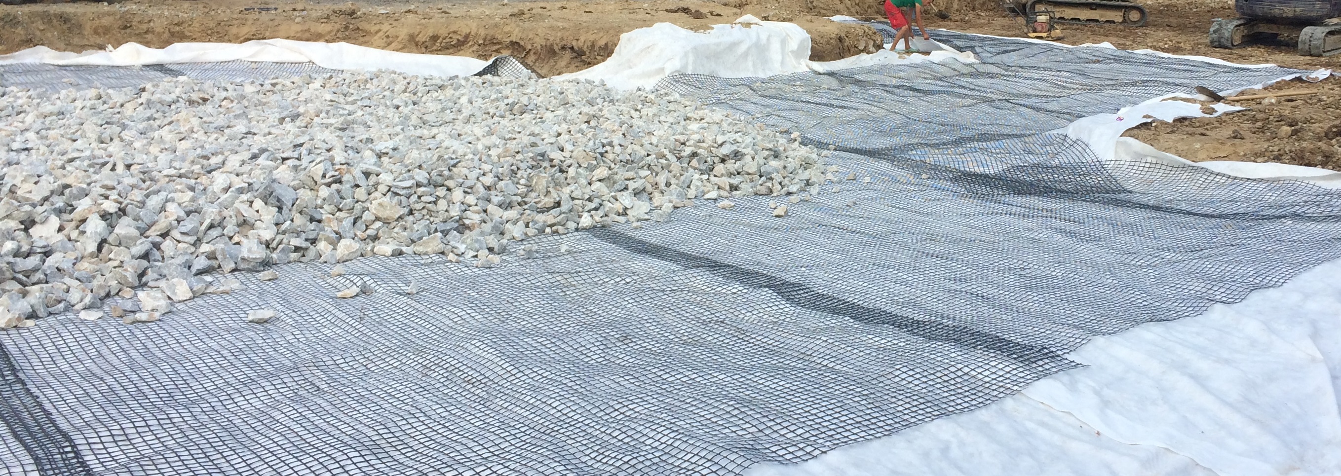 Для улучшения геотехнических характеристик грунтов на объекте произведены работы по укрепению территории с использованием плоской геосетки XGrid PET-PVC.