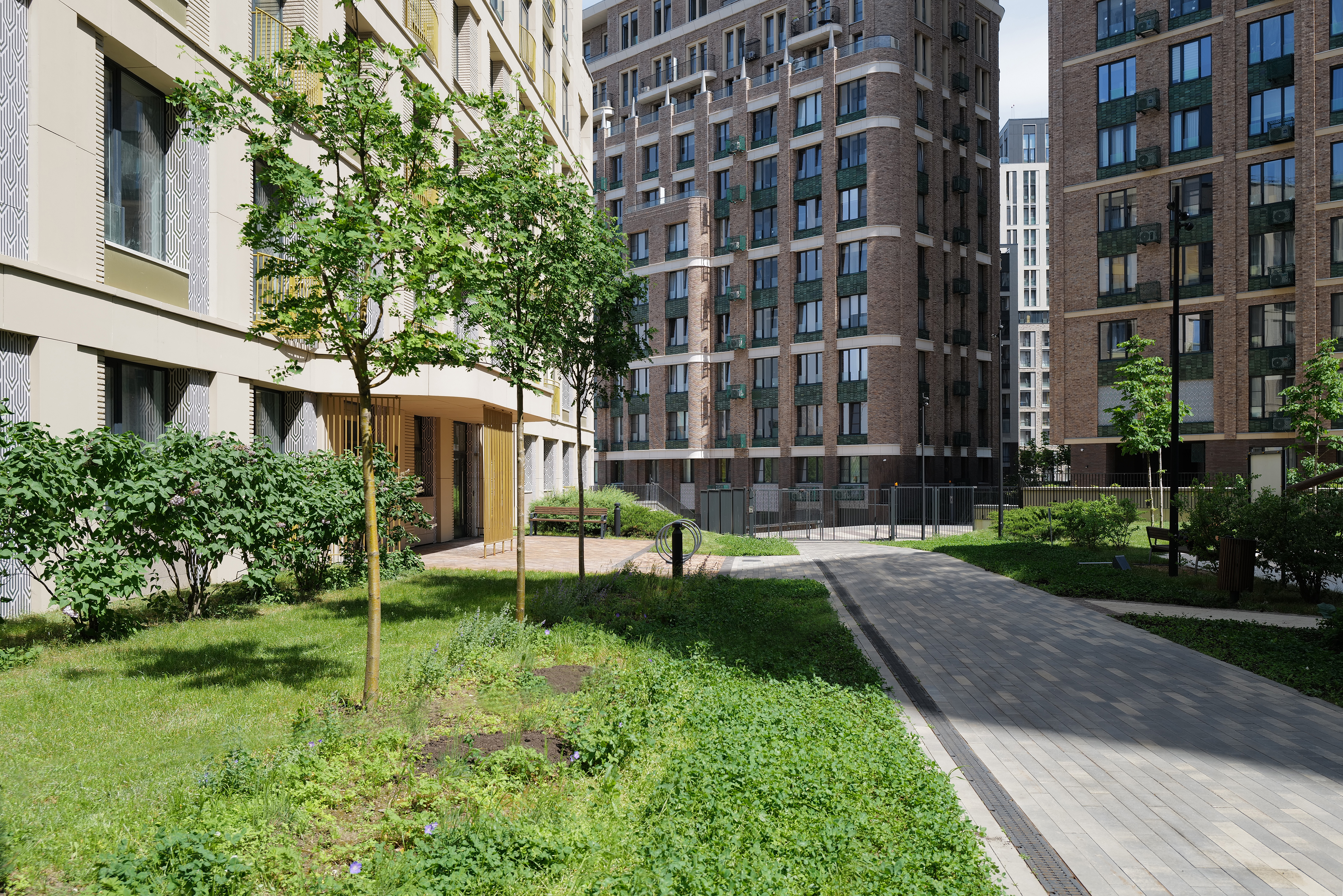 ЖК Квартал NOW примыкает непосредственно к береговой линии и задачей архитекторов было сделать уютные дворы жилого комплекса и благоустройство набережной. Для накопления влаги и дренажа применялся материал Максистуд F, за аэрацию, разделение слоев и фильтрацию влаги отвечал дренажный геокомпозит QDrain ZW 8 75. Укрепление подтопляемых склонов было осуществлено благодаря Дренажному геокомпозиту XGrid PET PVC AM. Также на данном объекте было реализовано решение, которое часто мучает многих архитекторов - проезд пожарной техники в зеленой зоне. Было разработано надежное решение с применением клевера.