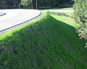 Для защиты почвы от эрозии и формирования растительного покрова на пологих склонах применяются неармированные геоматы KMat L. Хаотичная структура волокон ограничивает перемещения частиц грунта или семян многолетних трав по поверхности откоса.