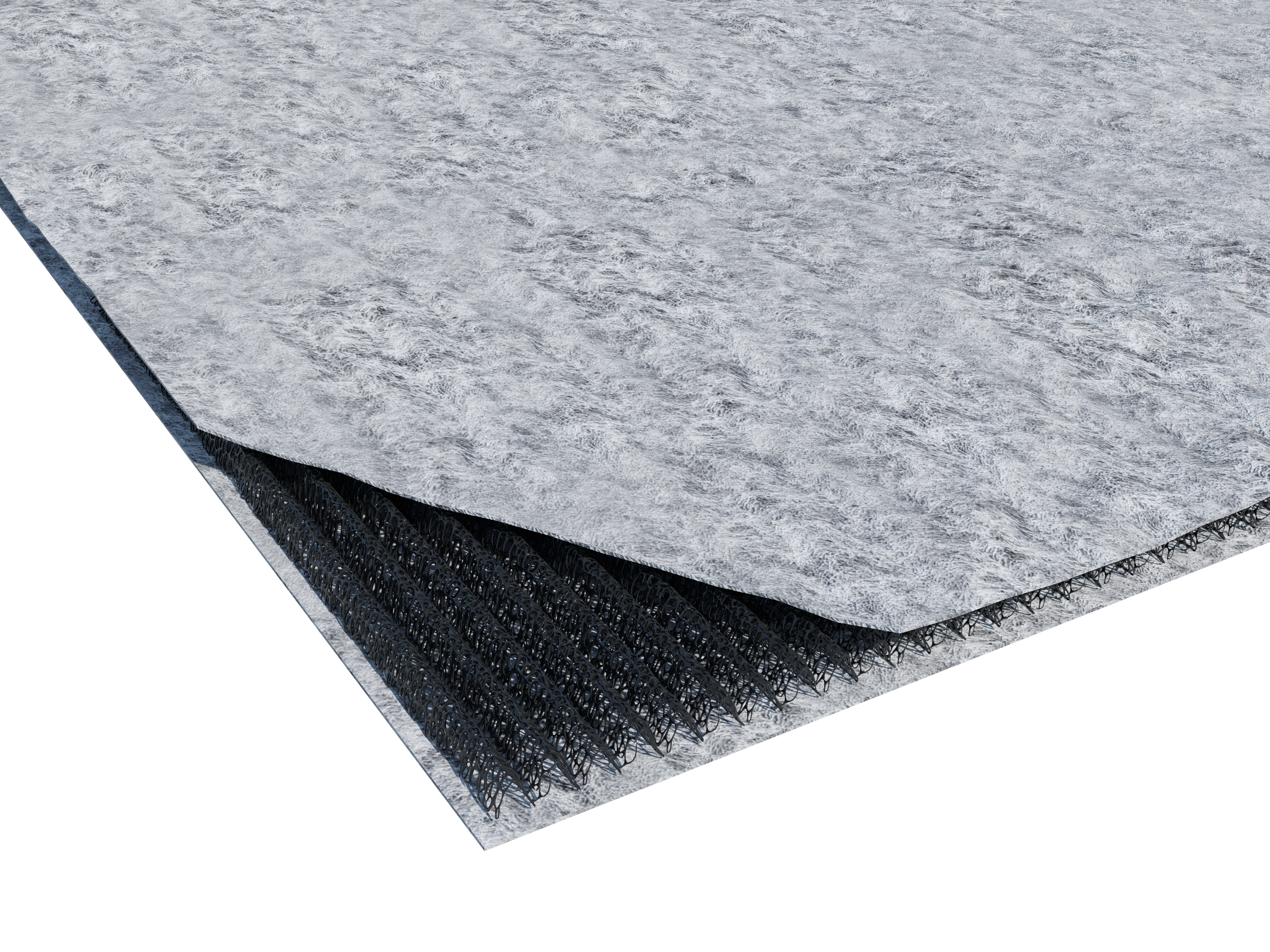 Дренажный геокомпозит с высоким показателем пустот, изготовленный из экструдированных полипропиленовых нитей, переплетенных и термосклеенных между собой с образованием Z-образной структуры. С двух сторон имеет дополнительные слои из геотекстильного полотна. Применяется в дренажных системах.