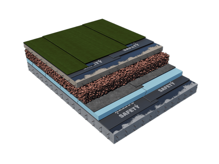 Водоизоляционный ковер из наплавляемых материалов Сейфити, утеплитель — пеностекольный щебень.